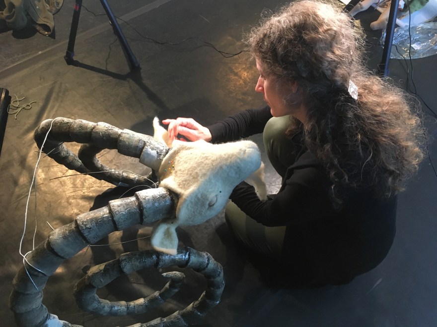 Je suis présentement dans la conception d’une œuvre sculpturale de laine et de papier. La pandémie constitue un temps parfait pour cela, pouvant travailler seule dans mon atelier. C’est aussi un temps propice à la réflexion et à l’introspection. C’est un retour vers la sculpture que je m’accorde, après plusieurs années dédiées presque exclusivement à la marionnette. Ce qui m’amène à réfléchir et à faire un bilan de mon parcours.