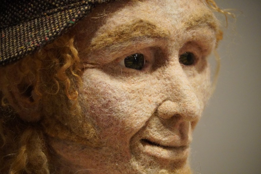 Sculptor and puppeteer Noémi Bélanger invites us to discover her human and animal characters in various dimensions, right up to the human scale. At the intersection of visual and performing arts, Noémi Bélanger’s work is inspired by the human being, its fragility and impermanence. The artist chooses wool, a material derived from animals, to transcend these intrinsic qualities of the living and to visually convey kinaesthetic sensations. Through the choice of materials, the facial mimics and bodily attitudes of the characters, the artist’s visual and narrative universe engages the emotional and empathetic relationship with both self and other.